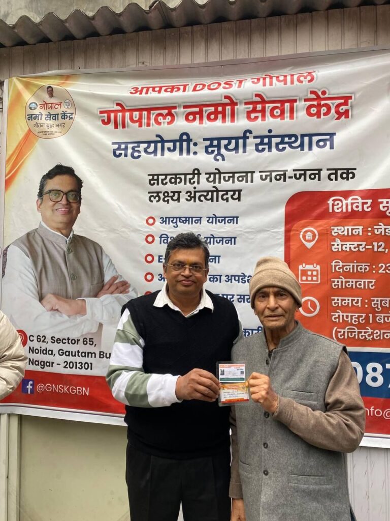 “गोपाल नमो सेवा केंद्र” द्वारा लगाए गए इस मेगा आयुष्मान कैंप में पेंशन,राशन कार्ड, किसान सम्मान निधि, ई-श्रम कार्ड सहित कई और अन्य सरकारी जनकल्याणकारी योजनाओं की जानकारी लोगों को प्रदान की गई।