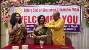 गाजियाबाद (सुशील कुमार शर्मा) २८ जुलाई २०२५: रोटरी क्लब चिरंजीव विहार द्वारा तीज का त्योहार बड़े ही हर्षोल्लास और धूमधाम से मनाया गया। इस विशेष अवसर पर डॉ. अजय कुमार ने क्लब की नई अध्यक्षा मोनिका कौशल को कॉलर पहनाकर उनके अध्यक्ष पद का औपचारिक स्वागत किया। साथ ही श्वेता गुप्ता ने सचिव पद का कार्यभार संभाला। इस अवसर पर सभी सदस्यों ने तंबोला, पास द हैट, म्यूजिकल चेयर और डांस जैसी मनोरंजक गतिविधियों का भरपूर आनंद लिया। सभी विजेताओं को उपहार भी प्रदान किए गए।