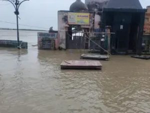 बुलंदशहर 5 / सितम्बर / 2025 : अनूपशहर में गंगा का जलस्तर लगातार बढ़ रहा है। जलस्तर में 6 इंच की बढ़ोतरी दर्ज की गई है। गंगा अब खतरे के निशान से मात्र 70 सेंटीमीटर नीचे बह रही है। मोहल्ला पवित्र पुरी स्थित लाल महादेव घाट से गंगा करीब 70 फीट आगे आबादी की ओर बढ़ गई है। इससे स्थानीय लोगों को गंगा घाट तक पहुंचने में परेशानी हो रही है। अनूपशहर के सभी गंगा घाटों की सीढ़ियां जलमग्न हो चुकी हैं। बिजनौर बैराज से 1.74 लाख क्यूसेक पानी छोड़ा गया है। यह पानी अगले दिन दोपहर तक अनूपशहर पहुंचने की संभावना है। सिंचाई विभाग के अधिकारियों के अनुसार, पहाड़ों पर हो रही बारिश के कारण गंगा के जलस्तर में लगातार वृद्धि हो रही है। आज 6000 क्यूसेक जल कल की अपेक्षा कम छोड़ा गया है। घाट पर दुकान लगाने वाले व्यापारियों का कहना है कि श्रद्धालुओं की कम आवाजाही के कारण उनका व्यवसाय प्रभावित हो रहा है। अनूपशहर का गंगा प्लेटफॉर्म तालाब की तरह हो गया है, जहां करीब 2 फुट पानी जमा है। एसडीएम अनूपशहर प्रियंका गोयल ने कहा कि घबराने की कोई बात नहीं है। तहसील प्रशासन पूरी तरह अलर्ट मोड पर है। प्रशासन द्वारा पल-पल की निगरानी की जा रही है।