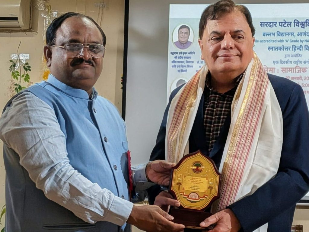 नई दिल्ली /04 फरवरी 2026 : साहित्य समाज का मन है तो सिनेमा समाज का चेहरा। साहित्य शब्दों की विधा है तो सिनेमा दृश्य और ध्वनि की। हमारी बहुत सी साहित्यिक कृतियों पर बेहद खूबसूरत, सफल और कालजयी फिल्में बनी हैं। लेकिन यह अत्यंत दुखद है कि अब हमारे अधिकांश फिल्मकार भारतीय साहित्य पर फिल्म न बनाकर विदेशी साहित्य पर फिल्म बना रहे हैं। यही कारण है कि हमारी फिल्मों से भारतीयता दूर होती जा रही है। यदि ऐसे ही चलता रहा तो हमारा साहित्य भी विश्वपटल पर आने की जगह पुस्तकों में सिमट कर रह जाएगा। उपरोक्त विचार वरिष्ठ पत्रकार, लेखक, कवि, विचारक और विख्यात फिल्म समीक्षक प्रदीप सरदाना ने ‘साहित्य और सिनेमा, सामाजिक एवं सांस्कृतिक सन्दर्भ’ में आयोजित एक राष्ट्रीय संगोष्ठी में मुख्य अतिथि के रूप में व्यक्त किये। गुजरात और देश के प्रतिष्ठित ‘सरदार पटेल विश्वविद्यालय,वल्लभ विद्यानगर,आणंद द्वारा आयोजित इस एक दिवसीय संगोष्ठी में देश भर के विभिन्न विश्वविद्यालयों के आचार्य, कई साहित्यकार और फिल्म विद्वानों ने हिस्सा लिया। विश्वविद्यालय के आचार्य एवं हिंदी विभाग के अध्यक्ष डॉ. दिलीप मेहरा इस अविस्मरणीय आयोजन के संयोजक थे।
