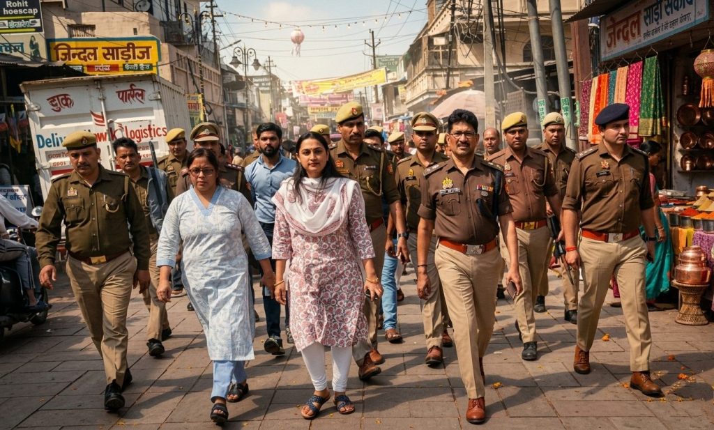 खुर्जा (बुलंदशहर): रंगों के त्योहार होली और होलिका दहन को देखते हुए जिला प्रशासन पूरी तरह अलर्ट मोड पर है। सोमवार को जिलाधिकारी श्रुति और एसएसपी दिनेश कुमार सिंह ने खुर्जा पहुंचकर सुरक्षा व्यवस्थाओं का स्थलीय निरीक्षण किया। अधिकारियों ने पुलिस बल के साथ शहर के विभिन्न होलिका दहन स्थलों का जायजा लिया और कानून व्यवस्था को सुदृढ़ बनाए रखने के लिए मुख्य बाजारों व मार्गों पर फ्लैग मार्च निकाला।