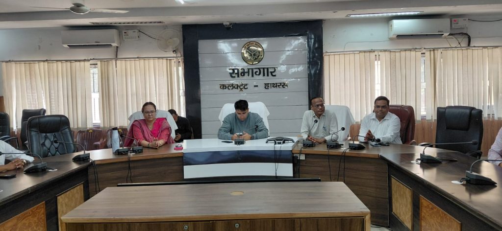 हाथरस : 14 / अप्रैल / 2026 : भारत रत्न डॉ. भीमराव रामजी आंबेडकर की 135वीं जयंती के अवसर पर कलेक्ट्रेट सभागार में जिलाधिकारी अतुल वत्स की अध्यक्षता में भव्य कार्यक्रम का आयोजन किया गया। इस अवसर पर अपर जिलाधिकारी (वि./रा.) डॉ. बसंत अग्रवाल, प्रभारी अधिकारी कलेक्ट्रेट लवगीत कौर सहित विभिन्न विभागों के अधिकारियों एवं कर्मचारियों ने बाबा साहब के चित्र पर माल्यार्पण कर श्रद्धांजलि अर्पित की।