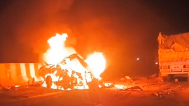 टक्कर के तुरंत बाद बोलेरो में आग लग गई और देखते ही देखते पूरी गाड़ी आग की लपटों में घिर गई। अंदर बैठे लोग बाहर निकलने की कोशिश करते रहे और मदद के लिए चीखते रहे, लेकिन आग इतनी तेज थी कि कोई उन्हें बचा नहीं सका।